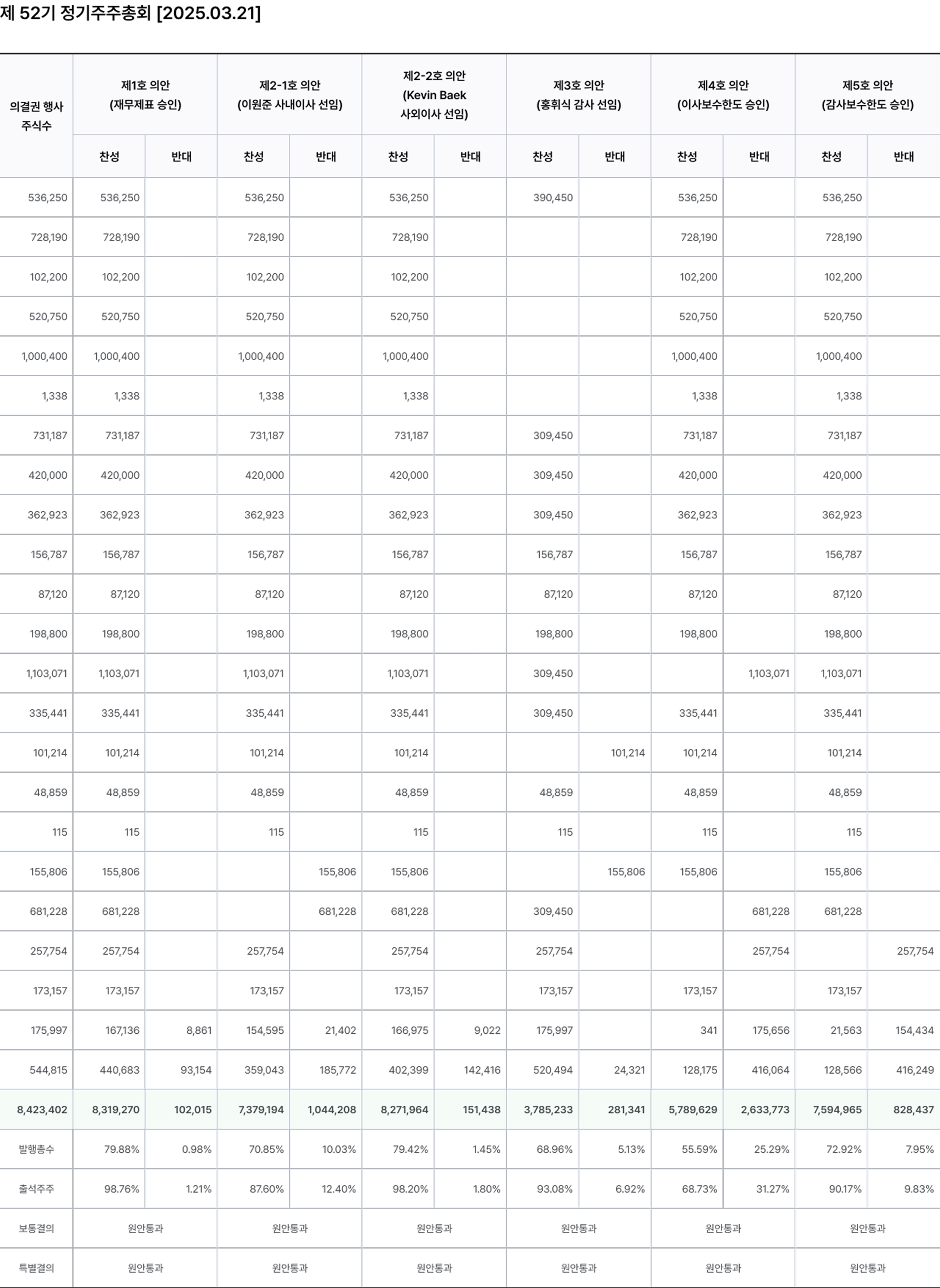 | 배당총액 (단위 : 천원) | 22,693,000 | 7,220,500 | 7,220,500 | 7,220,500 | 7,220,500 |