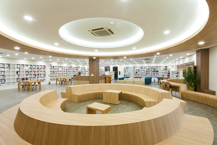 북카페 형태의 인테리어를 자랑하는 도서관은 약 1만 권의 장서를 비롯해 동시에 약 80명까지 수용할 수 있는 좌석을 갖추고 있다.